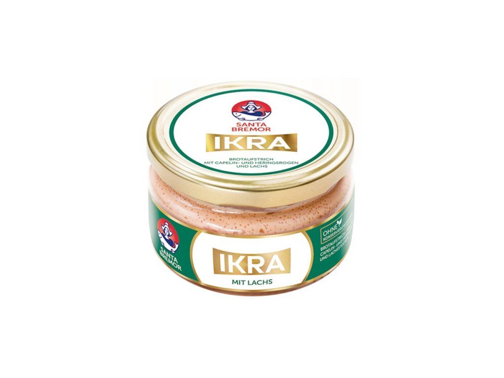 Složení:Rybí jikry solené (jikry huňáče 33,6 %, jikry sledě 8,4 %, sůl, slunečnicový olej, voda, kousky lososa uzené 8 % (losos, sůl, kouř), cukr, bramborový škrob, žloutkový prášek, barviva: karmín pravý, paprikový extrakt; sušené kukuřičné mléko, zahušťovadlo xanthanová guma, okyselující látka kyselina octová.