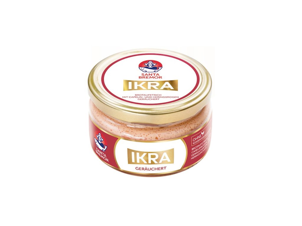 Složení:Slaná jikra z huňáče 35% (jikry z huňáče, sůl), uzená jikra z huňáče 15% (jikry z huňáče, sůl, kouř), slunečnicový olej, pitná voda, cukr, sušený vaječný žloutek, bramborový škrob, zahušťovadlo xantanová guma, sušené odstředěné mléko, okyselovadlo kyselina octová, barvivo paprikový extrakt.