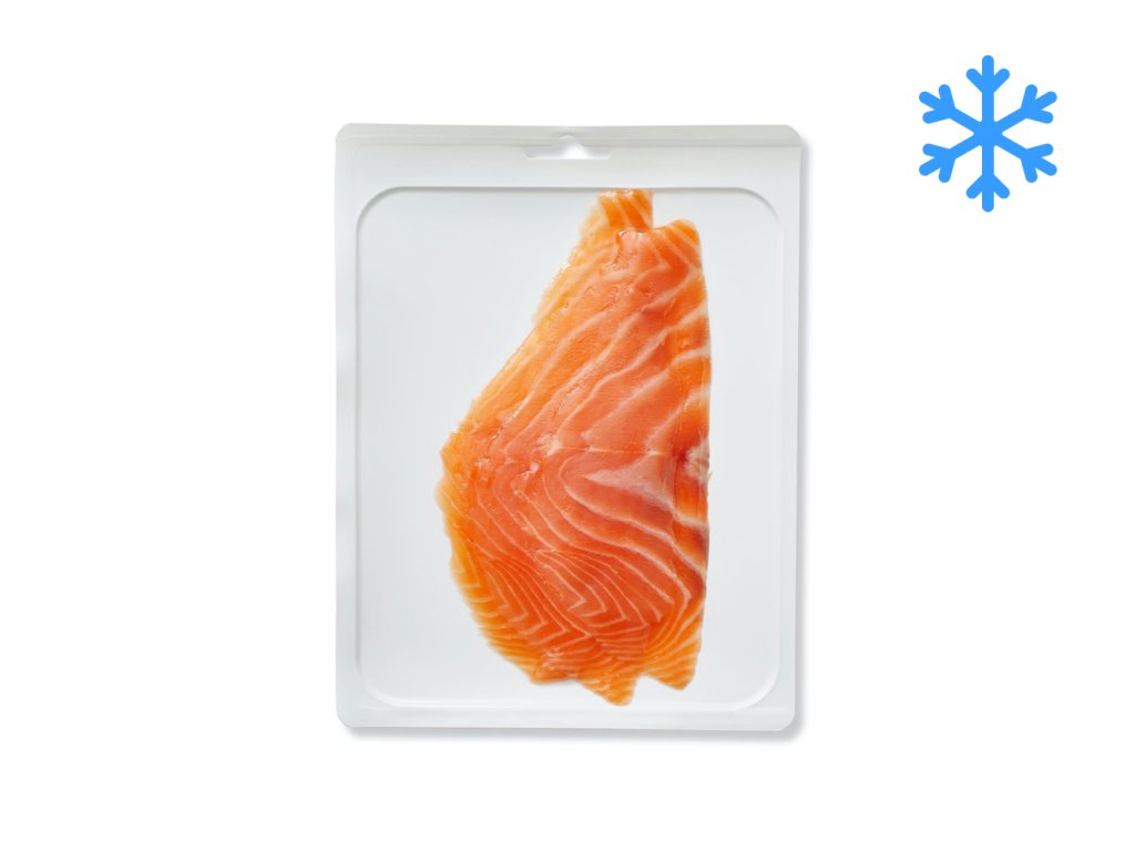 Lehce solené plátky lososa ve vakuovém balení.