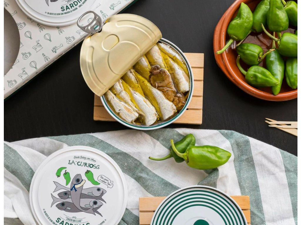 Jemné sardinilly v kvalitním olivovém oleji doplněné smaženou papričkou Padrón. Některé pálí, jiné ne – přesně tak, jak to má být.
