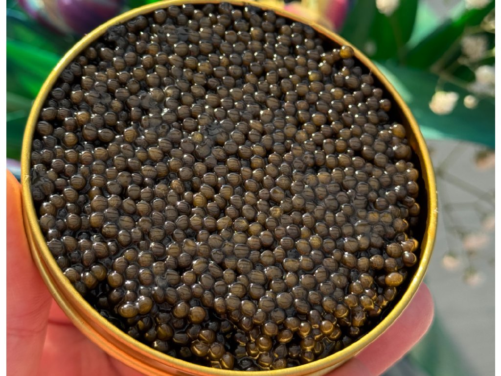 Jeho středně velká zrna o průměru 2–2,5 mm mají lesklý povrch a odstíny od zlatistě kaštanové po tmavě hnědou. V chuti se snoubí jemnost s krémově oříškovými tóny a lehkou přírodní hořkostí, přičemž nízký obsah soli (35 g/kg) podtrhuje přirozený charakter tohoto kaviáru.