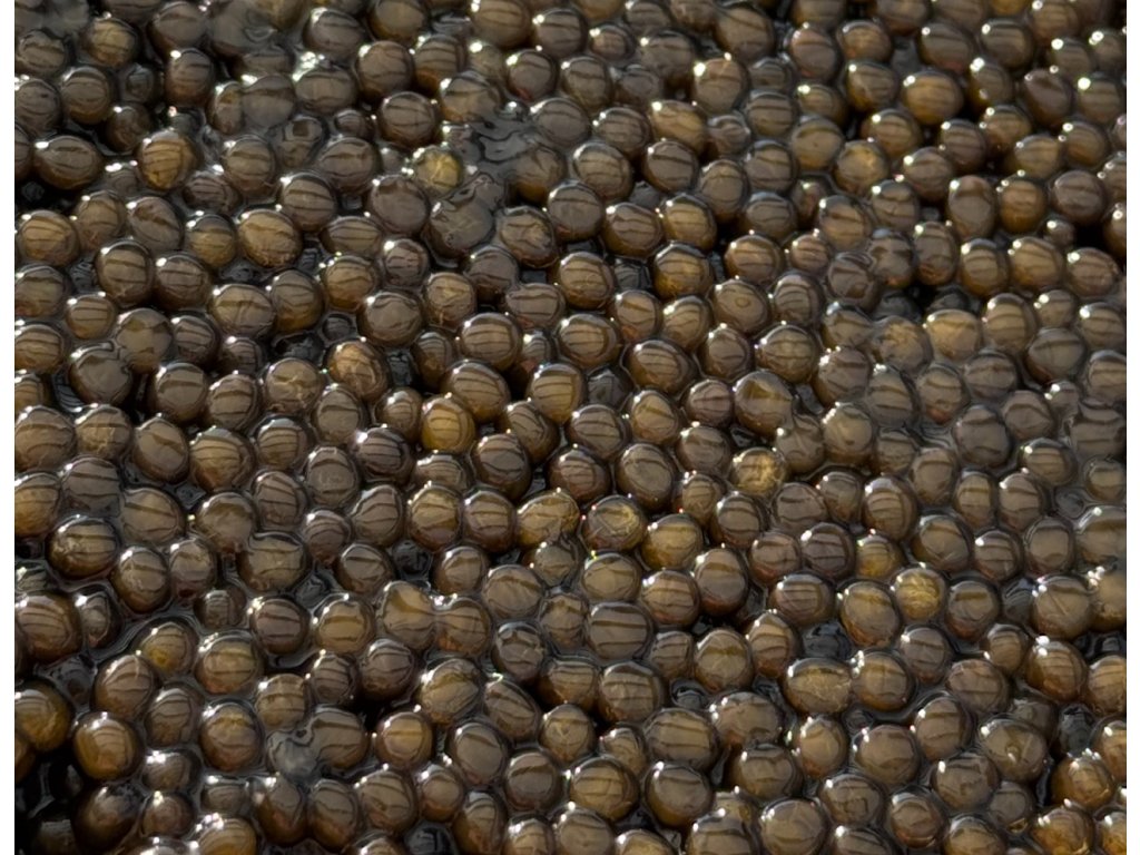 Střední jikry, jemná textura, decentní slanost, krémově oříškové tóny a lehka přírodní hořkost.